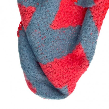 Su cierre con hebilla de cuero vegano asegura un ajuste perfecto y estiloso, eliminando la necesidad de múltiples intentos: siempre queda impecable! Con un atractivo patrón en zigzag que combina tonos azul y coral, esta bufanda de punto gordo aporta color, textura y un toque moderno a tu look diario.