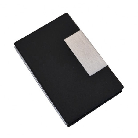 -Presentado en tarjetero de aluminio forrado de polipiel negro.