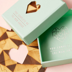 La forma más original de escribirle un mensaje de amor! Piensa en algo especial que quieras decirle a tu pareja, monta este puzzle con forma de corazón y escríbelo en el reverso, deshaz el puzzle y vuelve a meterlo en su caja. Tendrá que completar el puzzle para leer ese mensaje tan romántico que le has dedicado...y regalo sencillo pero muy especial!
