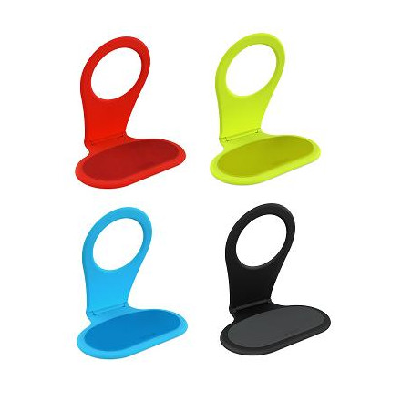 -Soporte para teléfono plegable diseñado para colgarlo del adaptador del propio teléfono mientras se está cargando. -Material: plástico. -Colores: negro, azul turquesa, rojo, pistacho. -Marca: Bobino. -Modelo:Driinn